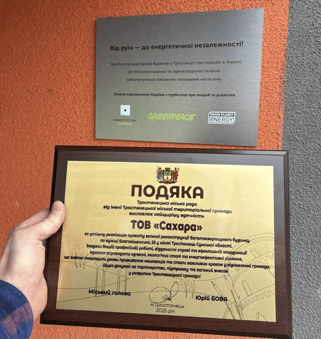 Сахара реалізувала проєкт «зеленого» теплопостачання у відновленому багатоквартирному будинку в Тростянці
